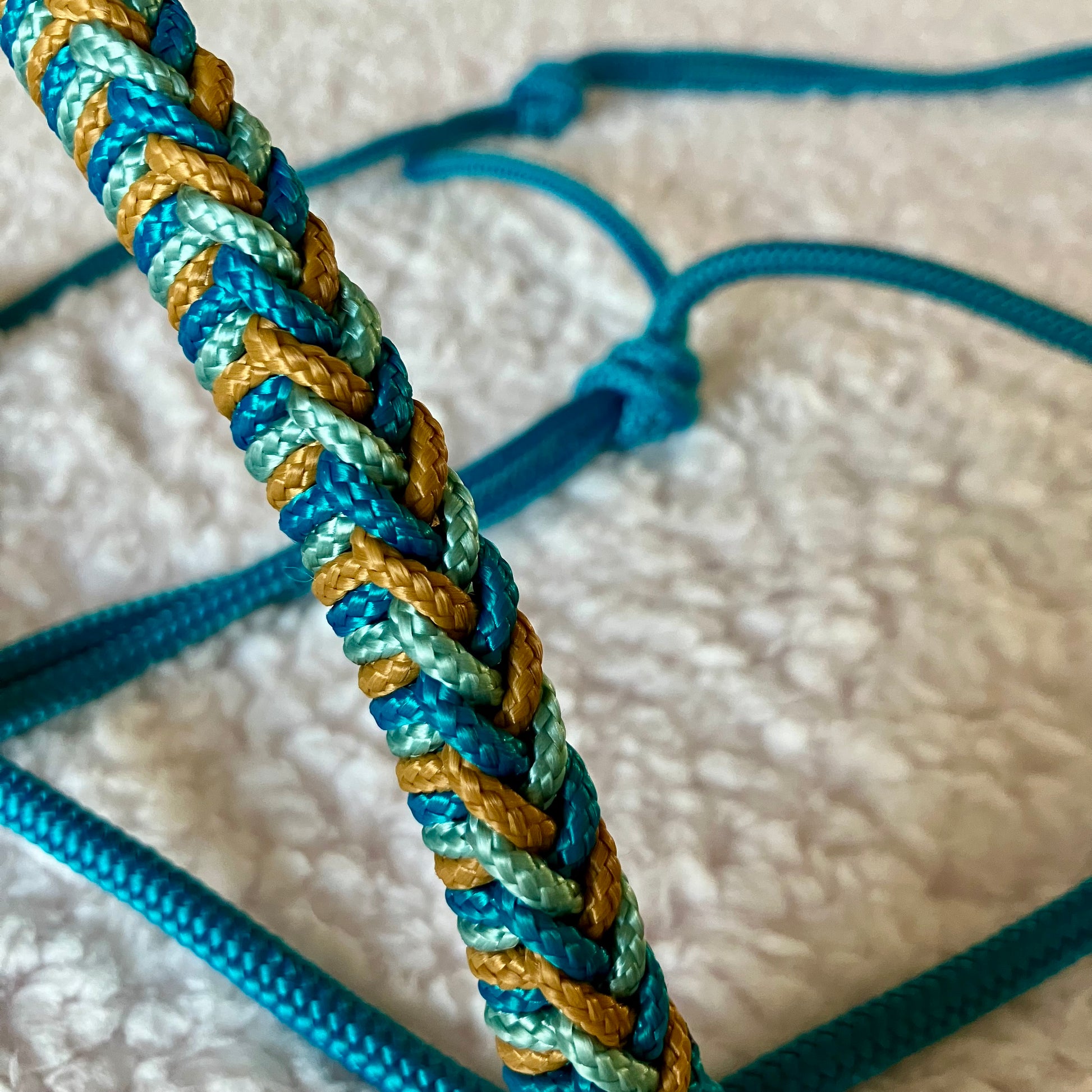 Alle halsters worden op bestelling geknoopt.