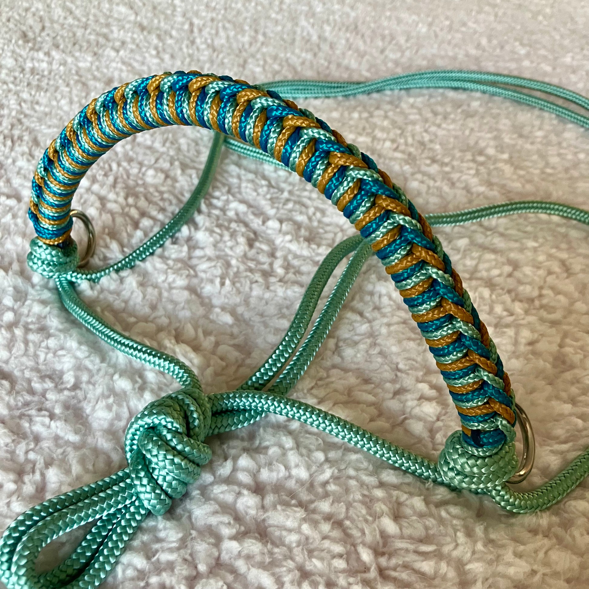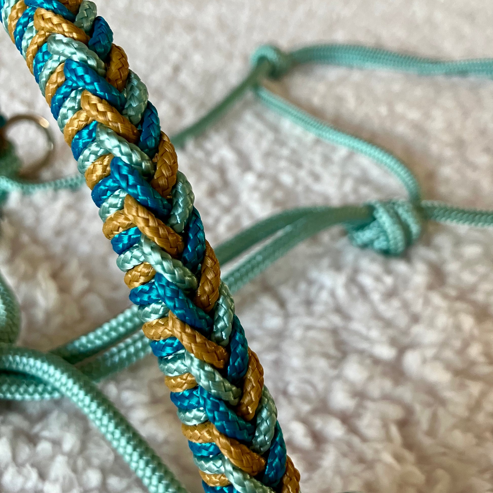 Touwhalster gevlochten neusstuk aqua, zeegroen, caramel